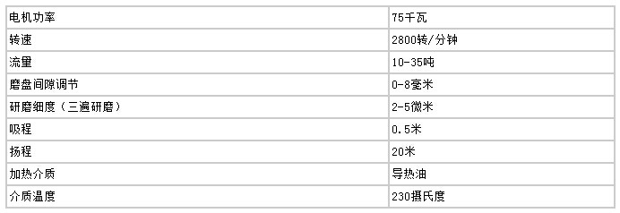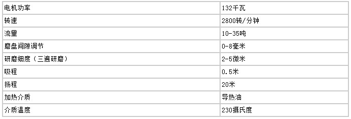 高速剪切均化磨技術(shù)參數(shù)(20T/小時)